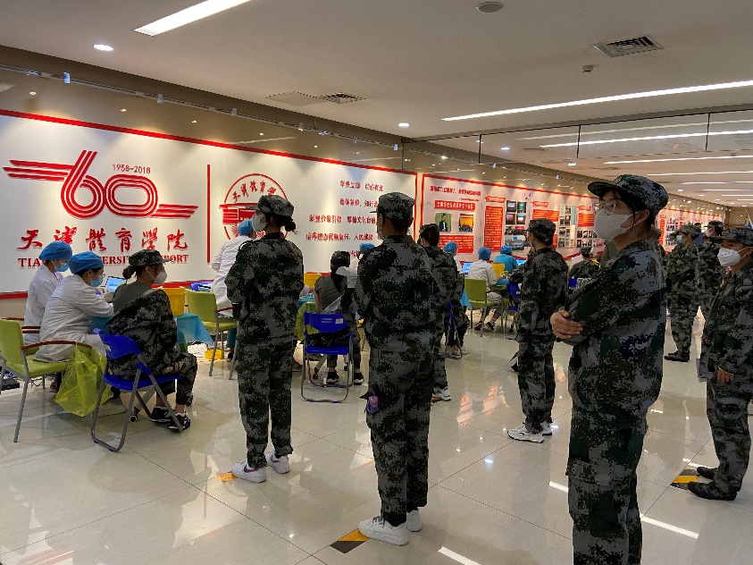 为预防麻疹、风疹、腮腺炎在我校流行,后勤处与杨成庄卫生院联合开展麻腮风疫苗接种工作。2021年9月24日,杨成庄卫生院医务人员在我校大学生活动中心为2021级本科学生进行了麻腮风疫苗接种。